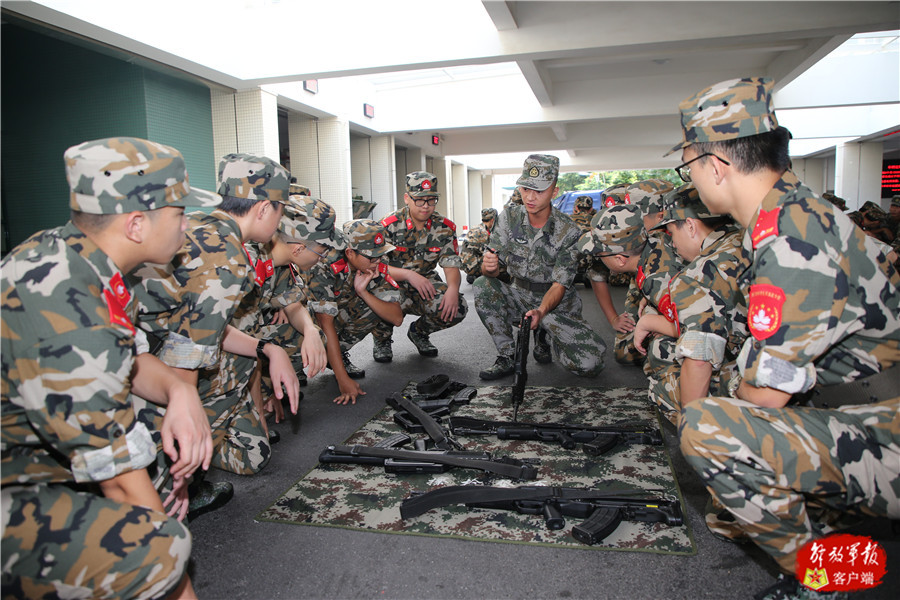 官兵給學(xué)生講解輕武器操作與使用(葉華敏 攝)
