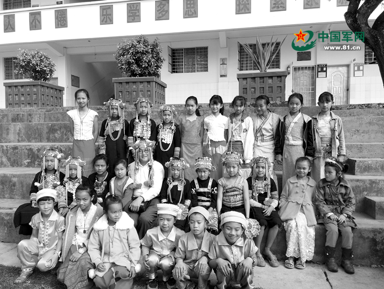 張志勇和云南省勐臘縣的孩子們合影。郭佳雄攝