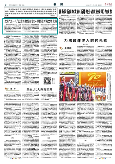 沈陽“九一八”歷史博物館新增34件抗戰(zhàn)時(shí)期文物史料