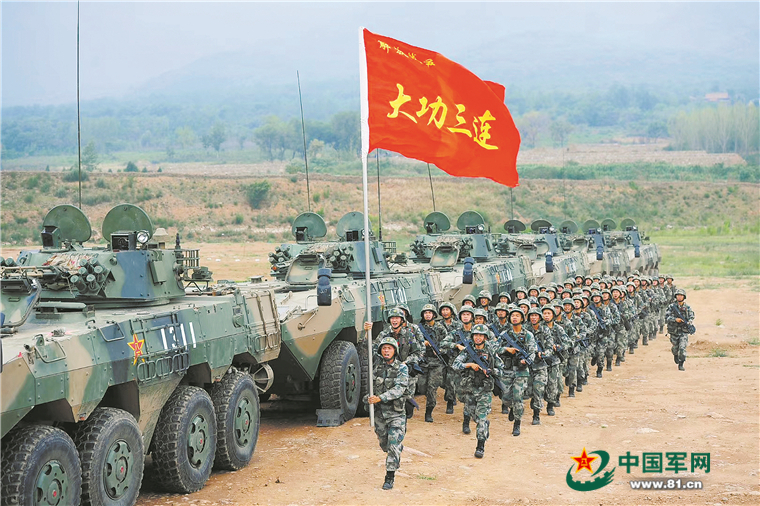 豫南某野外訓(xùn)練場,中部戰(zhàn)區(qū)陸軍某旅“大功三連”數(shù)十輛戰(zhàn)車縱橫馳騁,全副武裝的步兵跨壕溝、越障礙,利用多種武器對前方顯隱目標快速進行射擊。