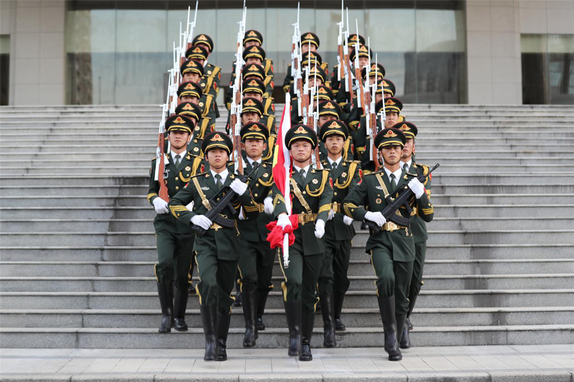 現(xiàn)場官兵整齊列隊齊唱國歌。