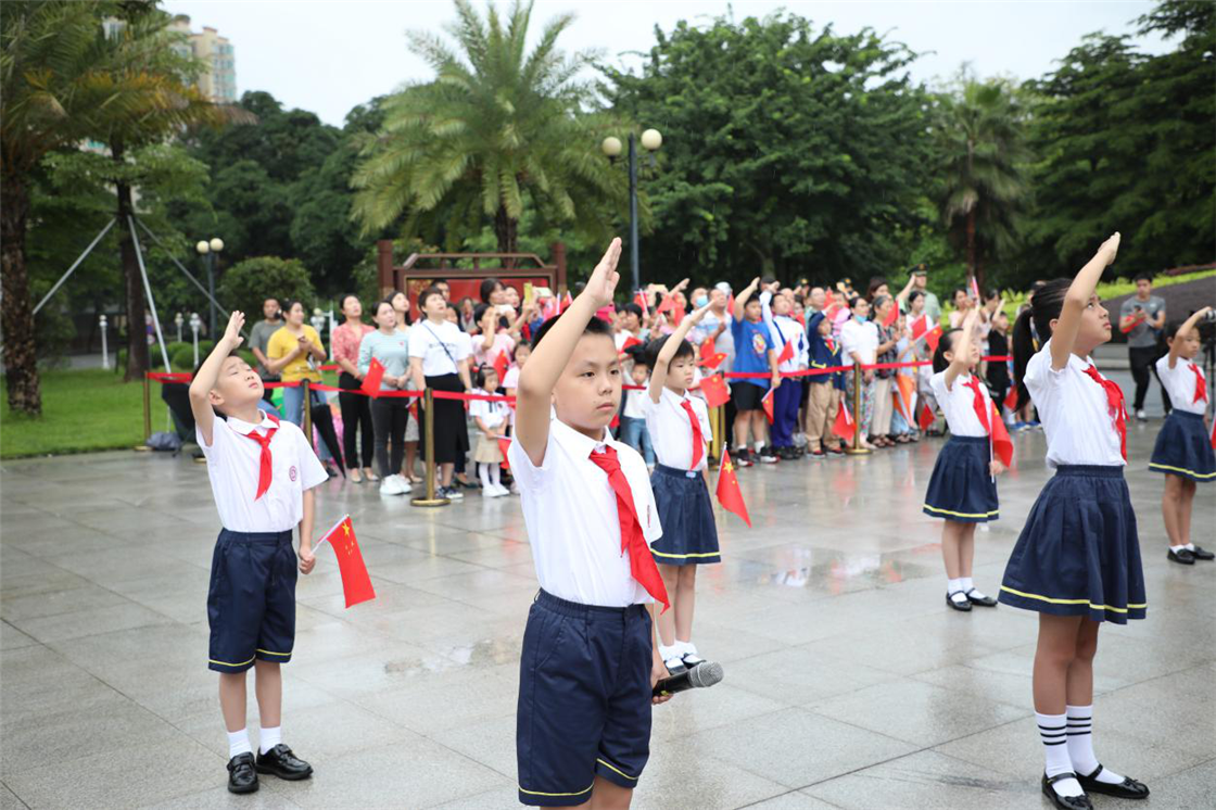 儀式活動以“五星紅旗迎風(fēng)飄揚(yáng)”為主題,邀請來自廣州市越秀區(qū)先烈中路小學(xué)的12名小學(xué)生參加升國旗儀式,并與直屬單位官兵共同朗誦詩歌《飄揚(yáng)》。歌頌為新中國成立付出獻(xiàn)血和生命的革命先輩;禮贊邁向民族復(fù)興、強(qiáng)軍興軍的偉大時代;抒發(fā)熱愛美好生活、熱愛偉大祖國的豪邁情懷。