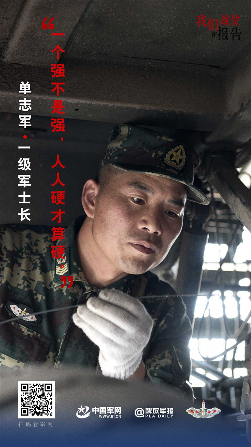 單志軍:一級(jí)軍士長(zhǎng),兵齡27年。