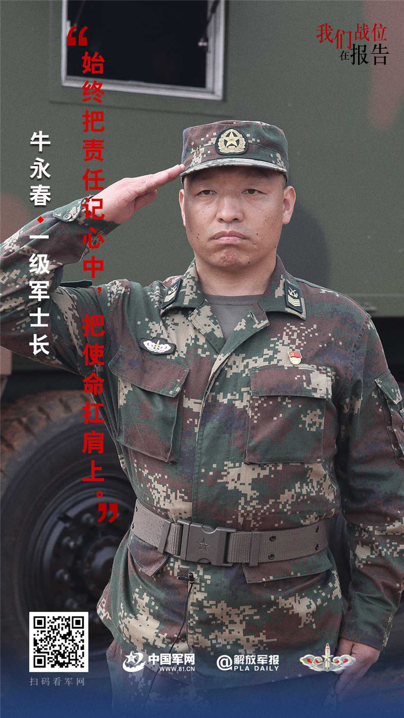 戰(zhàn)位報告:始終把責(zé)任記心中,把使命扛肩上。