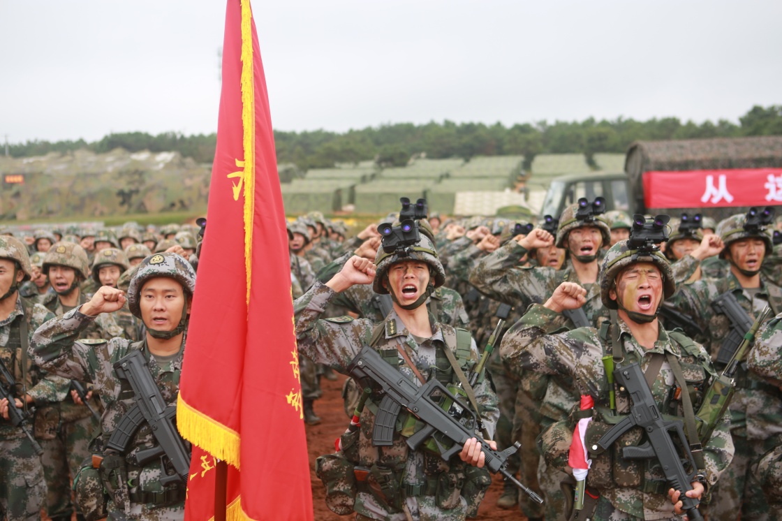 南部戰(zhàn)區(qū)陸軍第75集團軍某紅軍旅官兵面向榮譽戰(zhàn)旗宣誓(9月15日攝)。新華社發(fā)(李琦 攝)