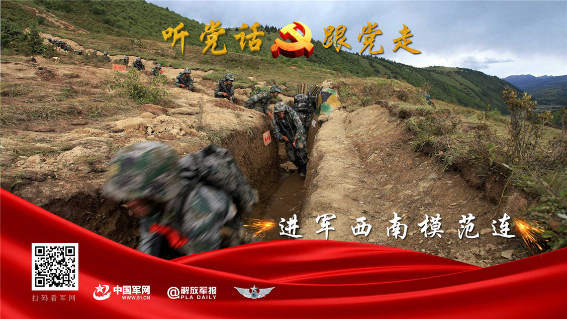 “進軍西南模范連”官兵在塹壕里迅速奔向戰(zhàn)斗崗位。