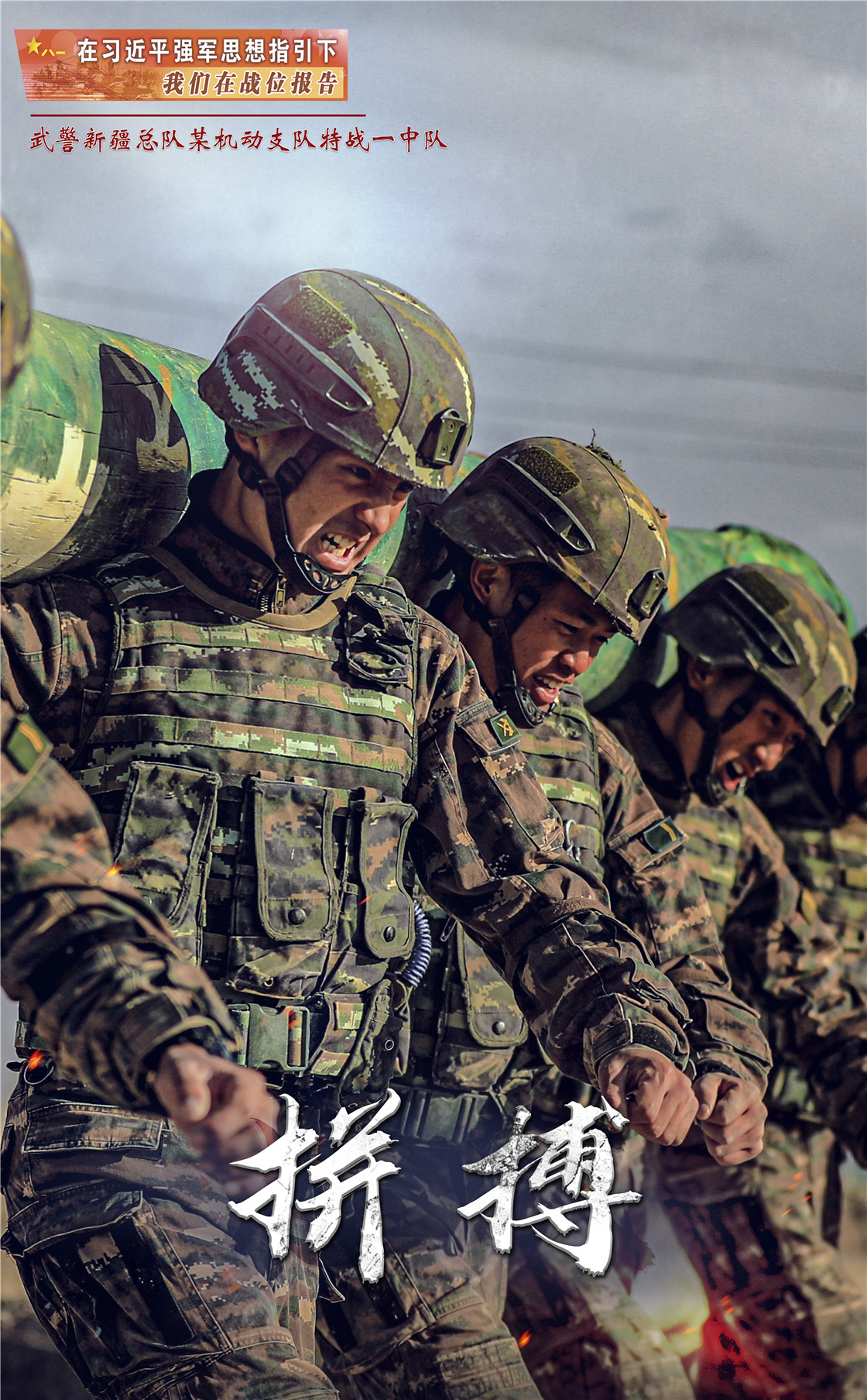 2014年4月27日,習(xí)主席親臨武警新疆總隊(duì)某機(jī)動(dòng)支隊(duì)特戰(zhàn)一中隊(duì)視察并親切寄語(yǔ):“你們是一支英雄的部隊(duì),確實(shí)名不虛傳。你們已經(jīng)交出了一份合格答卷!希望你們?cè)俳釉賲?、再立新功,為祖?guó)、為人民履行好我們的職責(zé)?!?/p>