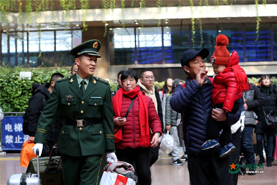 2020年1月,排長(zhǎng)簡(jiǎn)政在查勤途中主動(dòng)幫助一位懷抱孫子、拿著諸多行李的老人,將其順利帶到候車廳內(nèi)。