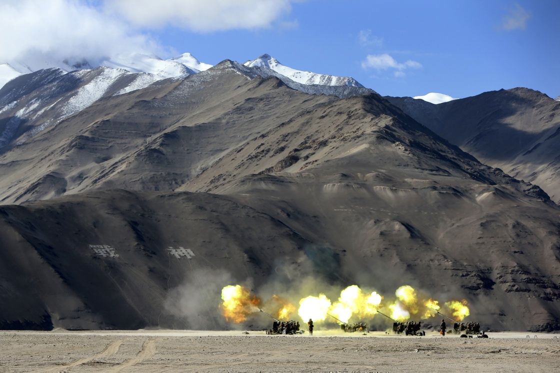 新疆軍區(qū)某紅軍師防空兵分隊在海拔4300多米的昆侖高原上進行實彈射擊(2015年9月17日攝)。新華社發(fā)(劉永 攝)