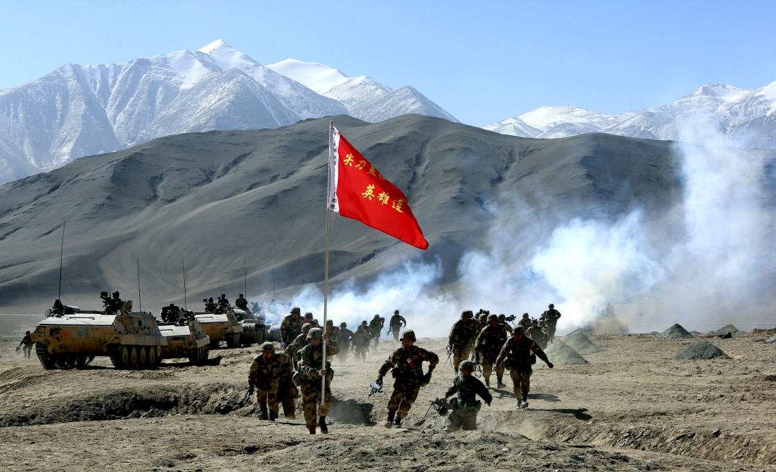 新疆軍區(qū)某紅軍師官兵在昆侖高原進行攻防戰(zhàn)術演練(2015年10月10日攝)。新華社發(fā)(劉永 攝)