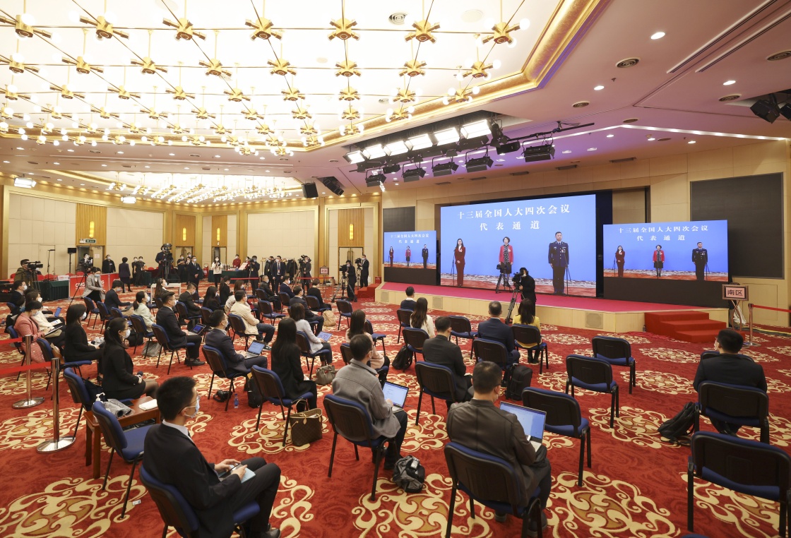 3月5日,第十三屆全國(guó)人民代表大會(huì)第四次會(huì)議舉行首場(chǎng)“代表通道”采訪活動(dòng)。這是記者在分會(huì)場(chǎng)通過(guò)網(wǎng)絡(luò)視頻方式采訪。