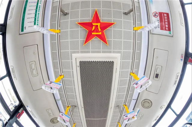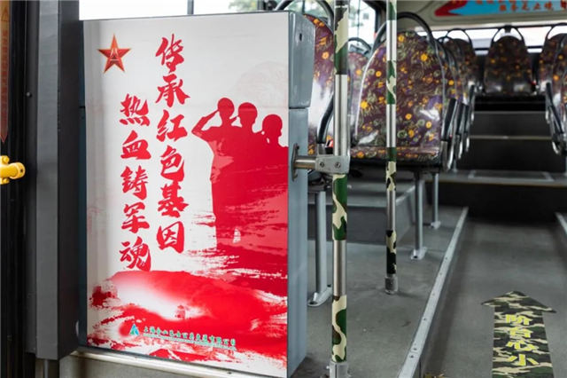 車廂前后部還張貼了雙擁工作相關標語,使公交文化和軍人文化有機結合,無形之中讓乘客接受了國防教育的熏陶。