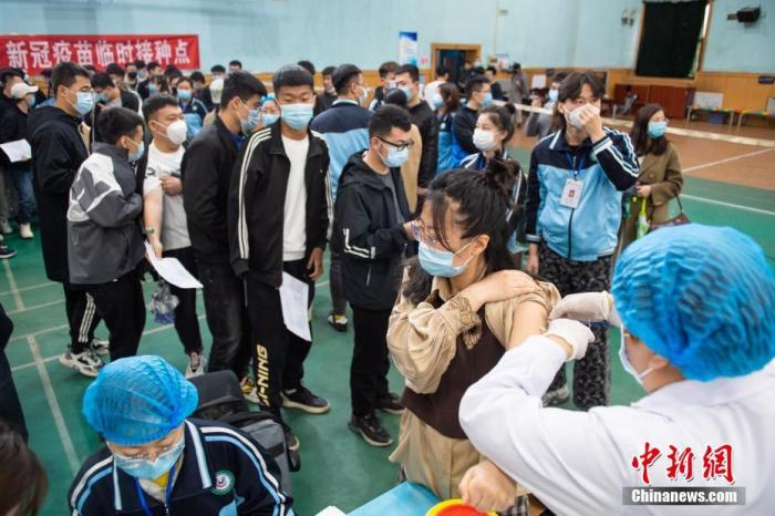 3月26日,山西太原城市學(xué)院師生在校內(nèi)指定地點接種新冠病毒疫苗。 中新社記者 武俊杰 攝