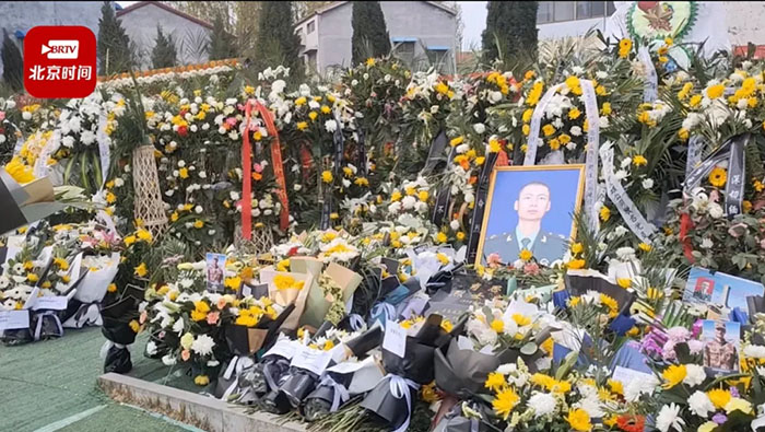 肖思遠(yuǎn)烈士墓前擺滿了花束,不少是全國各地網(wǎng)友委托代送的。