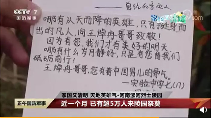 這段時(shí)間來自于省內(nèi)外,甚至來自于全球的華人都來到烈士陵園祭奠王焯冉及其他烈士。據(jù)烈士陵園統(tǒng)計(jì),近一個(gè)月來,已經(jīng)有超過五萬人來這里祭奠。