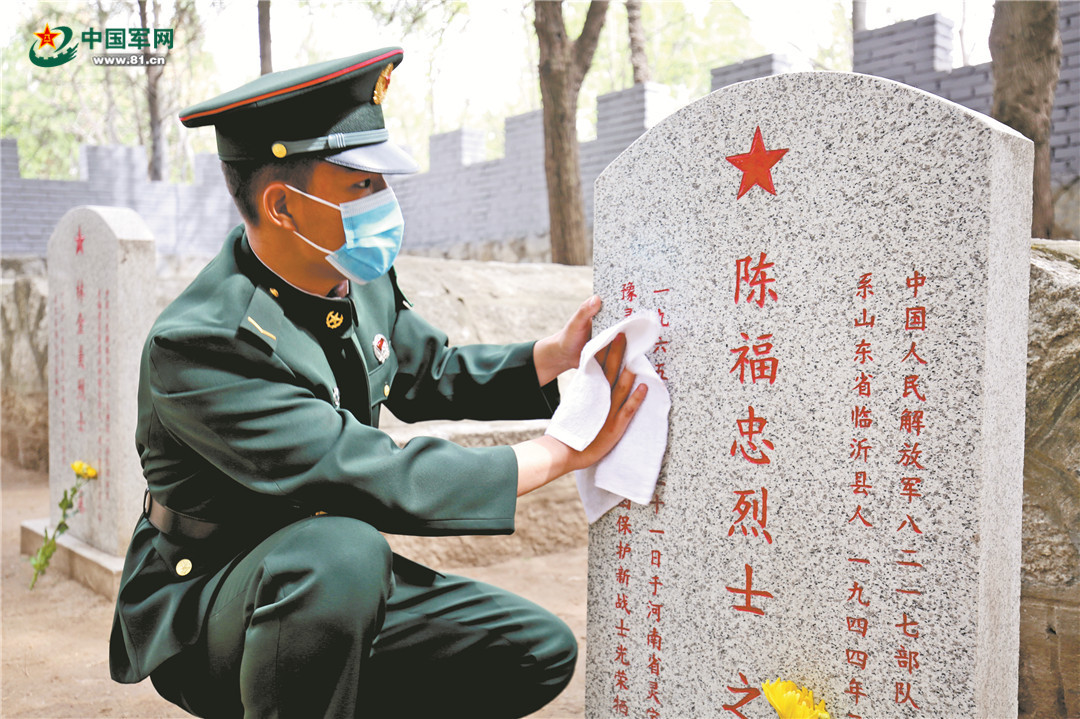 鄭州聯(lián)勤保障中心某倉(cāng)庫(kù)官兵為烈士掃墓。郭路華攝