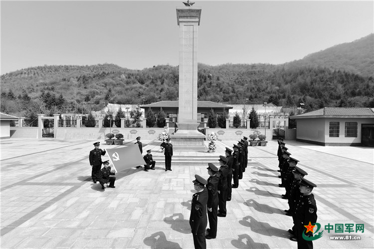 清明前夕,火箭軍某團官兵走進駐地烈士陵園開展祭奠活動,并面對黨旗莊嚴(yán)宣誓。李 羽攝