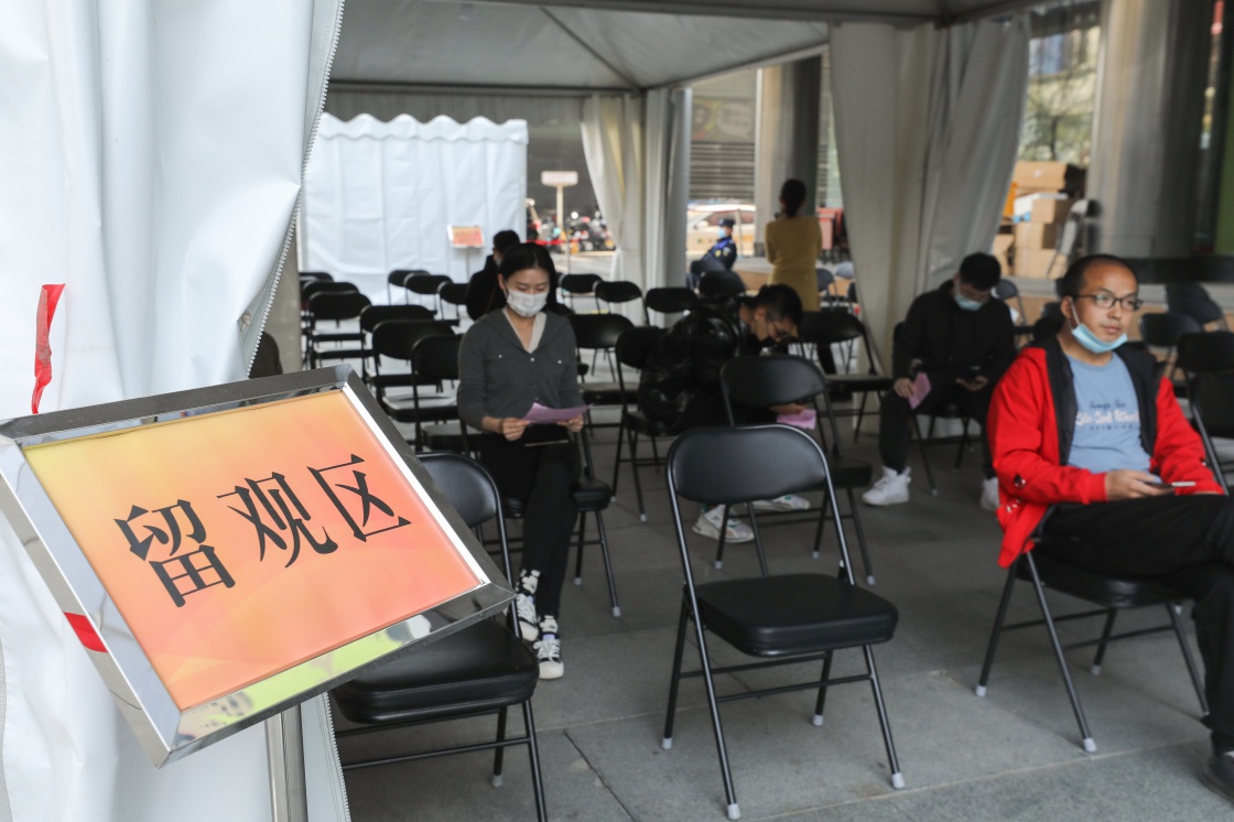 4月7日,接種完新冠疫苗的市民在留觀區(qū)休息。