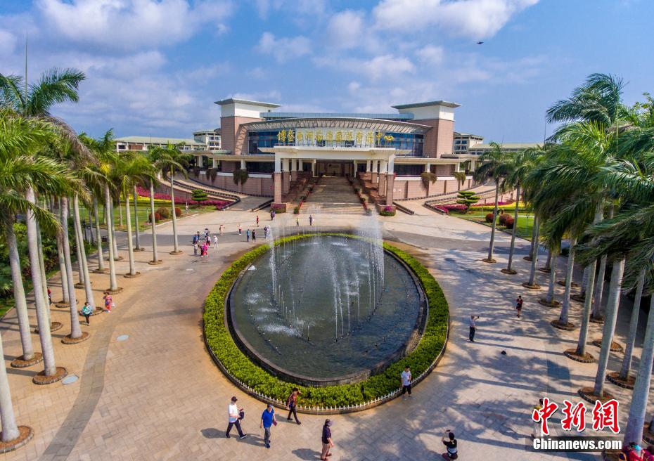 圖為航拍博鰲亞洲論壇永久會址前廣場噴泉。 駱云飛 攝