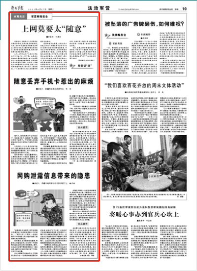 了解情況后,我陪這名戰(zhàn)友及時(shí)向指導(dǎo)員呂瀟栩報(bào)告,指導(dǎo)員對(duì)這名戰(zhàn)友開(kāi)展了批評(píng)教育,并督導(dǎo)他立即整改網(wǎng)上個(gè)人信息,與商家平臺(tái)溝通刪除有關(guān)軍人信息,并通過(guò)添加黑名單、設(shè)置關(guān)鍵詞等技術(shù)手段,減少干擾信息。