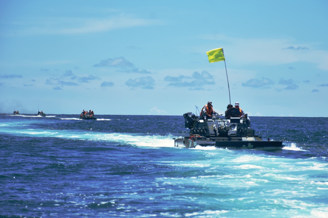 海軍陸戰(zhàn)隊(duì)某旅兩棲裝甲車組織海上駕駛訓(xùn)練(2020年7月24日攝)。新華社發(fā)(劉宇翔 攝)