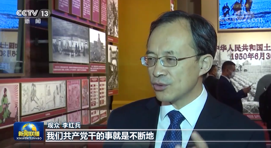 觀眾 李紅兵:我們共產(chǎn)黨干的事就是不斷地把老百姓他們想實(shí)現(xiàn)的事,他們家門口的揪心事困難事我們真正把它解決。我們每一個(gè)群體都要在這個(gè)展覽里真正領(lǐng)略這個(gè)歷史發(fā)展的規(guī)律,以及找到它的思想方法,這是我們未來來胸懷千年偉業(yè),繼續(xù)創(chuàng)造輝煌的基礎(chǔ)。