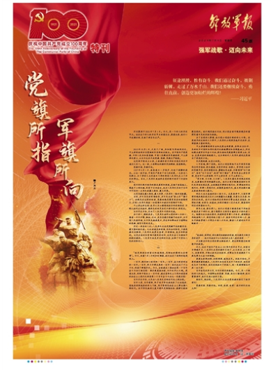 百年恰是風(fēng)華正茂,百年仍需風(fēng)雨兼程。今天,是一個新的偉大的起點。仰望鮮紅的黨旗、軍旗,我們心潮澎湃,我們豪情滿懷,我們充滿必勝的力量。