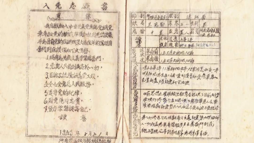 這些泛黃的紙頁(yè),時(shí)間跨度從戰(zhàn)爭(zhēng)歲月延續(xù)到新中國(guó)成立初期,不同時(shí)期的黨員們用他們質(zhì)樸的話(huà)語(yǔ),詮釋著對(duì)信仰的理解。