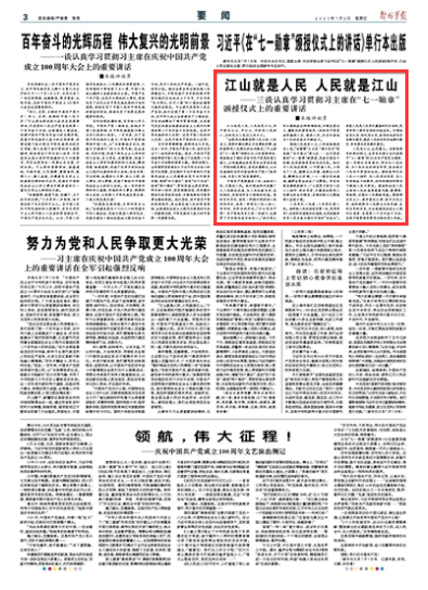 誰把人民放在心上,人民就把誰放在心里?!盎罾卒h”王蘭花、“燃燈校長”張桂梅、“當(dāng)代愚公”黃大發(fā)……這次受表彰的“七一勛章”獲得者,是我們黨各個時期、各條戰(zhàn)線黨員的杰出代表。他們對人民飽含深情,心中裝著人民,工作為了人民,想群眾之所想,急群眾之所急,解群眾之所難,一心一意為百姓造福,贏得全黨全社會廣泛贊譽。歷史和現(xiàn)實都深刻昭示,廣大黨員只有與人民心心相印、同甘共苦,才能密切黨同人民群眾的血肉聯(lián)系,在新征程上匯聚起強大奮進力量。