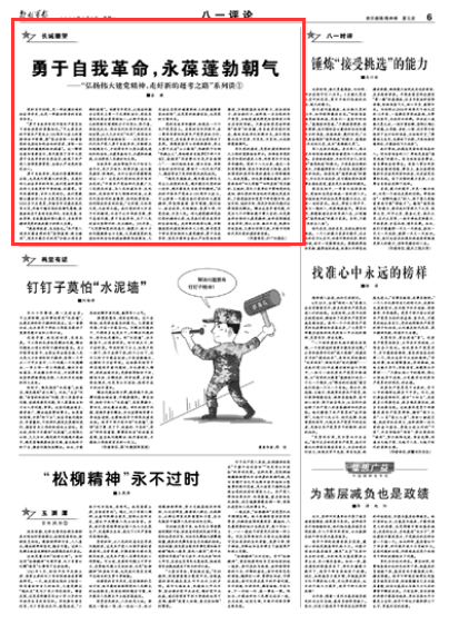 軍隊(duì)黨的建設(shè),是黨的建設(shè)新的偉大工程的重要組成部分。加強(qiáng)我軍黨的領(lǐng)導(dǎo)和黨的建設(shè)工作,同樣離不開(kāi)自我革命精神。黨的十八大以來(lái),通過(guò)一系列革弊鼎新、固本開(kāi)新的有力舉措,我軍加強(qiáng)黨的領(lǐng)導(dǎo)和黨的建設(shè)工作持續(xù)深入、成效顯著。但也要清醒地看到,我們黨面臨的“四大考驗(yàn)”“四種危險(xiǎn)”是長(zhǎng)期的、尖銳的,軍隊(duì)少數(shù)單位中影響黨的先進(jìn)性、弱化黨的純潔性的問(wèn)題也是復(fù)雜的,少數(shù)黨組織和黨員干部思想不純、政治不純、組織不純、作風(fēng)不純的問(wèn)題仍未得到根本解決。解決這些矛盾問(wèn)題,不是打幾個(gè)沖鋒就能萬(wàn)事大吉的,而是要始終弘揚(yáng)偉大建黨精神,始終堅(jiān)持推進(jìn)自我革命,持之以恒、馳而不息,既要打好攻堅(jiān)戰(zhàn),又要打好持久戰(zhàn),不斷開(kāi)創(chuàng)新時(shí)代軍隊(duì)黨的建設(shè)新局面。