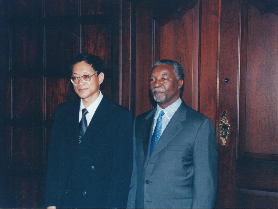 時任中國駐南非大使劉貴今向南非總統(tǒng)姆貝基遞交國書(2001年攝)。新華社發(fā)