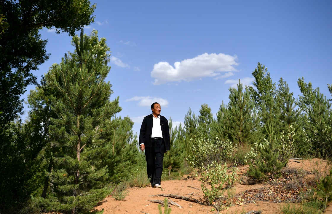 如今,這里成了毛烏素沙漠邊緣牢固的生態(tài)屏障。30多年間,石光銀在25萬畝荒沙、堿灘上植樹5300多萬株(叢),反復(fù)造林面積達(dá)35萬畝,徹底改變了當(dāng)?shù)亍吧尺M(jìn)人退”的歷史。