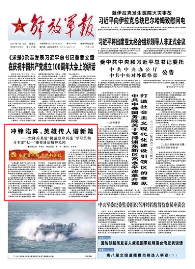 負責(zé)此次演練任務(wù)的“模范空降兵連”連長秦琪告訴記者,他們營教導(dǎo)員余海龍在今年全國“兩優(yōu)一先”表彰中,被授予“全國優(yōu)秀黨務(wù)工作者”稱號,并作為受表彰代表參加了慶祝中國共產(chǎn)黨成立100周年大會。返回部隊后,余海龍第一時間同官兵分享了現(xiàn)場聆聽習(xí)主席“七一”重要講話的感悟,極大激發(fā)了大家精武強能的熱情。