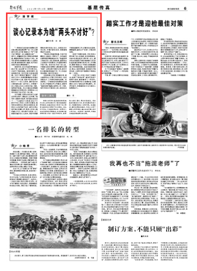 “現(xiàn)在機(jī)關(guān)到基層檢查,已經(jīng)不再翻筆記、查登記、考背記了,為何基層還要鄭重其事地增加本本?”檢查結(jié)果上報(bào)機(jī)關(guān)后,支隊(duì)黨委發(fā)現(xiàn),基層帶兵人在規(guī)定外自我要求工作留痕的情況不是個(gè)例。有的中隊(duì)開(kāi)設(shè)了談心室,不管新兵是否有需求,都被要求定期“報(bào)到”,由帶兵骨干做好記錄;有的中隊(duì)為確保教育檢查萬(wàn)無(wú)一失,仍組織官兵按統(tǒng)一格式補(bǔ)抄筆記……