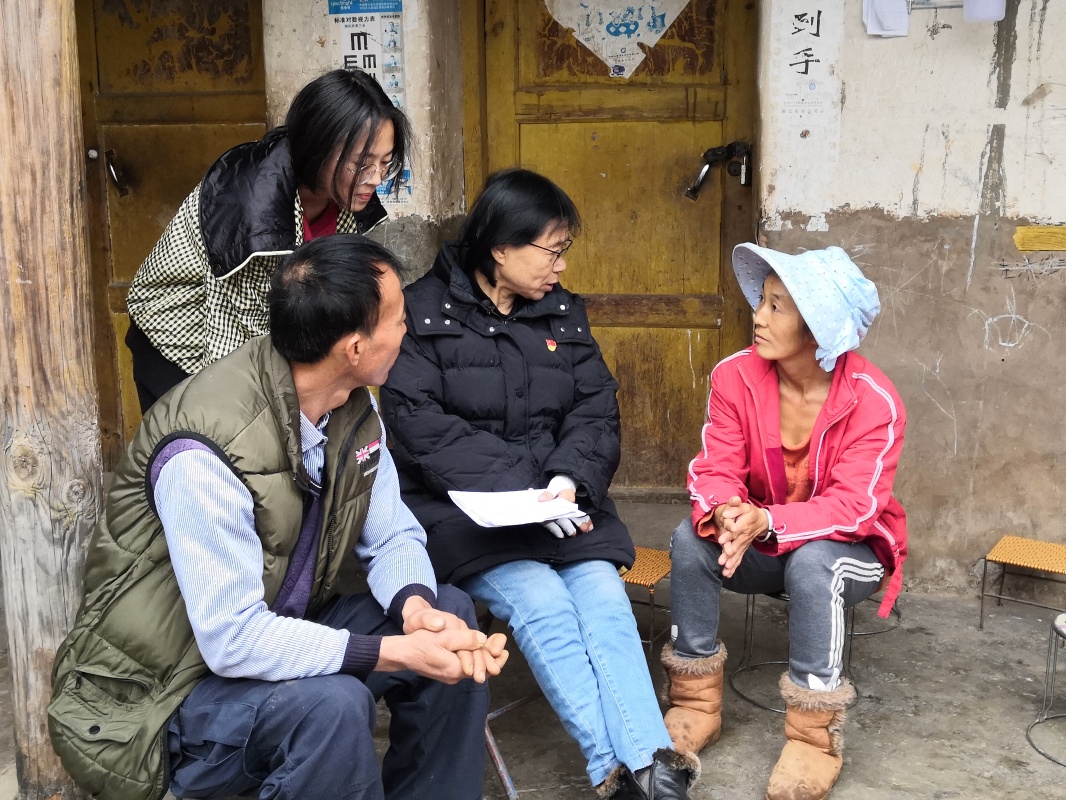 2月9日,張桂梅(右二)在家訪時與學(xué)生家長交談。新華社發(fā)(王秀麗 攝)