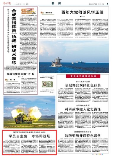解放軍報訊 金詩銘、特約記者吳繼宏報道:7月上旬,某訓(xùn)練場上,一場紅藍對抗激戰(zhàn)正酣。陸軍裝甲兵學(xué)院“鐵騎亮劍-2021”畢業(yè)綜合戰(zhàn)術(shù)演習(xí),在近1個月內(nèi)晝夜連貫實施,學(xué)員經(jīng)受了一次全方位的畢業(yè)大考。