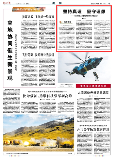 列寧曾說:“從革命理論中能取得一切信念?!崩碚撋锨逍眩拍钌喜拍軋远?;理論上自信,行動上才能堅決。全軍官兵特別是黨員干部應(yīng)深入學(xué)習(xí)貫徹習(xí)近平新時代中國特色社會主義思想和習(xí)近平強軍思想,更加自覺地用以武裝頭腦、指導(dǎo)實踐、推動工作,做到學(xué)深悟透、融會貫通、真信篤行。要在常學(xué)常新中加強理論修養(yǎng),在真學(xué)真信中堅定理想信念,在學(xué)思踐悟中牢記初心使命,在細照篤行中不斷修煉自我,在知行合一中主動擔(dān)當(dāng)作為,把牢思想之舵,高揚理想之旗,真正做到任何時候都能保持清醒、認準方向、砥礪前行。