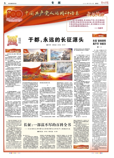 專家:長征是一部中國革命的百科全書,長征精神集中體現(xiàn)了黨和紅軍的優(yōu)良傳統(tǒng)和作風(fēng),是中國共產(chǎn)黨人世界觀、人生觀和價(jià)值觀的全面展示。當(dāng)今世界,處于百年未有之大變局,國際斗爭形勢風(fēng)起云涌,波譎云詭;審視國內(nèi),船到中流浪更急,人到半山路更陡。新長征的號角已經(jīng)吹響,未來必然會遇到更多的“婁山關(guān)”“臘子口”,我們尤其需要回望初心、堅(jiān)定信心,弘揚(yáng)偉大長征精神,闖關(guān)奪隘,殺出一條血路來,為實(shí)現(xiàn)中華民族偉大復(fù)興的中國夢提供源源不竭的動力。