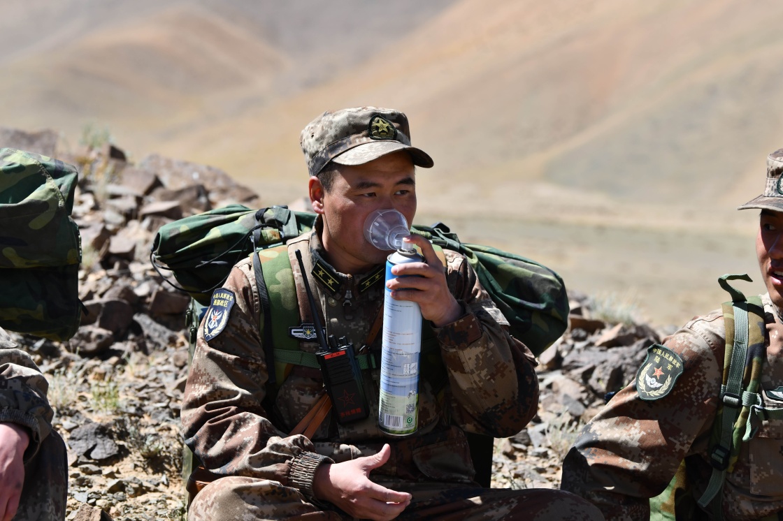 曾文龍(中)在高原地區(qū)調(diào)研裝備作戰(zhàn)性能(7月20日攝)。新華社發(fā)(劉波 攝)