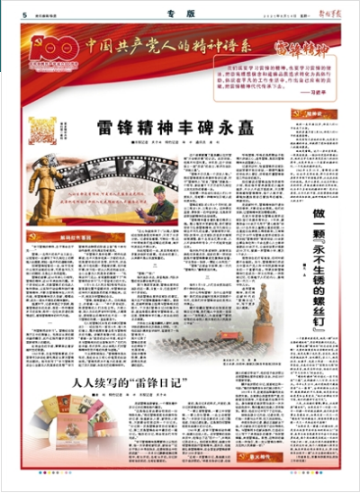 “這是每名官兵都會(huì)收到的一份特殊禮物?!爆F(xiàn)任雷鋒班班長(zhǎng)牟振華告訴記者,每逢新兵入營(yíng)、新排長(zhǎng)入職等,大家都會(huì)收到這樣一個(gè)日記本。“日記第一頁是雷鋒參軍后的首篇日記,第二頁是雷鋒生命中最后的一篇日記。隨后的日記,將由官兵們書寫完成?!?/p>