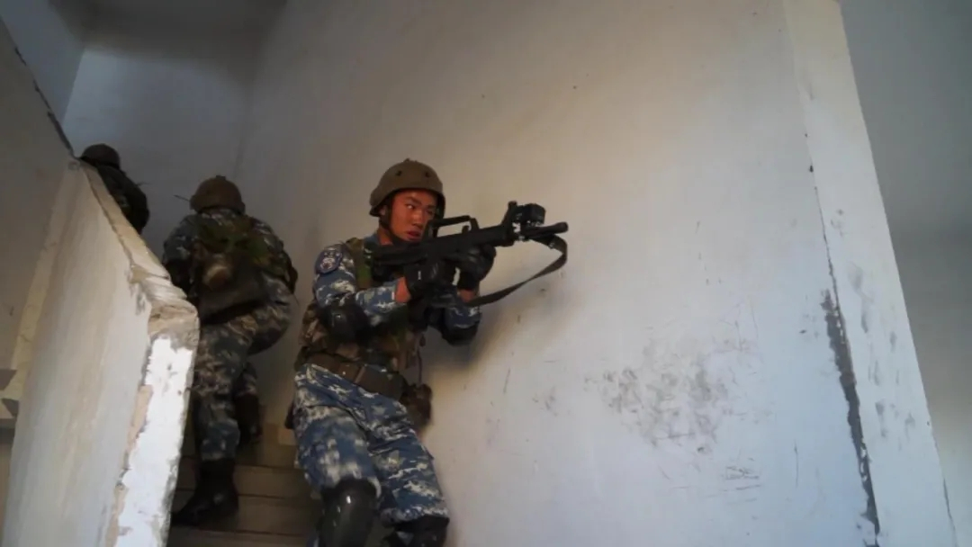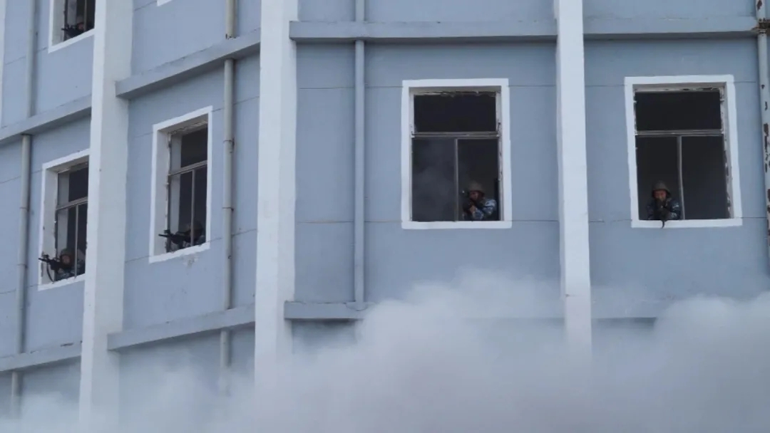 情報顯示,模擬藍軍就在前方的幾棟建筑物內。其實我身邊的這些戰(zhàn)友也是來自這個藍軍旅,可以說今天的這場戰(zhàn)斗是“朱日和之狼”對陣“朱日和之狼”。但是我們在明處,敵人在暗處,這給我們的進攻帶來了很大挑戰(zhàn)。