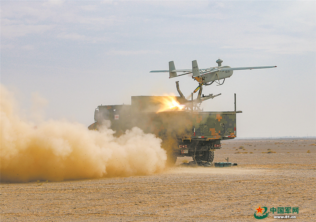 “起飛!”指揮員下達命令,無人偵察機騰空而起。與此同時,地面?zhèn)刹旆株犚部焖傧颉皵场鼻把貦C動,占據有利地形展開偵察。