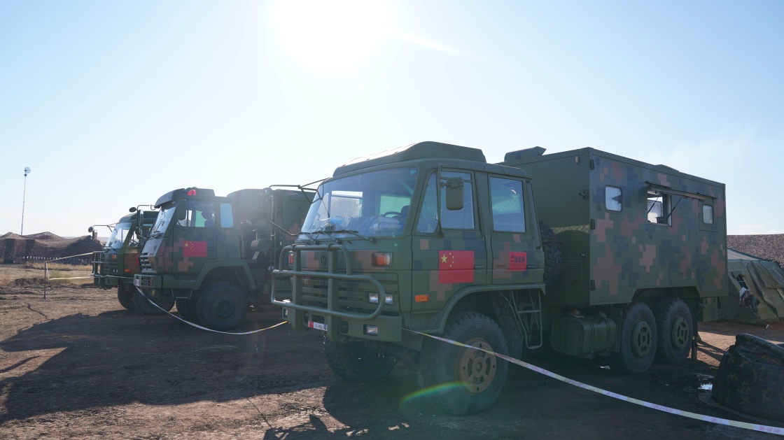 這是9月13日在俄羅斯奧倫堡州東古茲靶場拍攝的“和平使命-2021”“中國營”營區(qū)野戰(zhàn)自行炊事車。新華社記者 梅世雄 攝