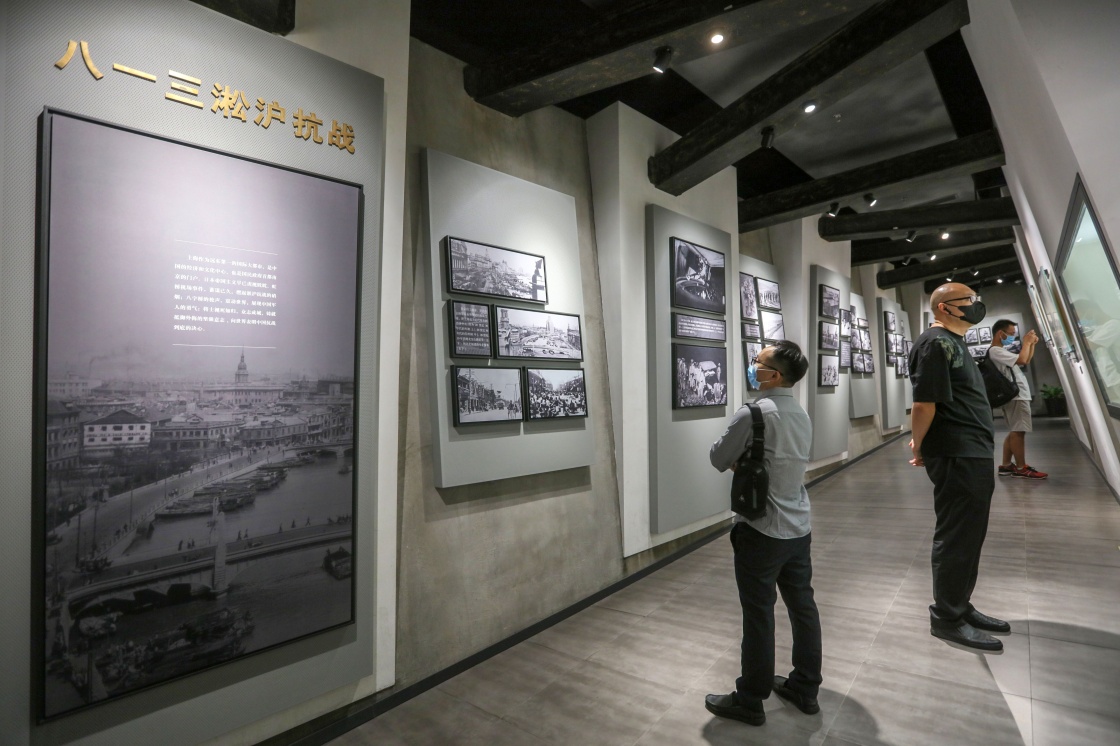 9月16日,人們在四行倉庫抗戰(zhàn)紀念館參觀。