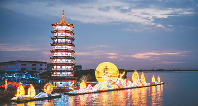 海峽兩岸(昆山)中秋燈會(huì)“月滿周莊”燈組。新華社記者 楊 磊攝