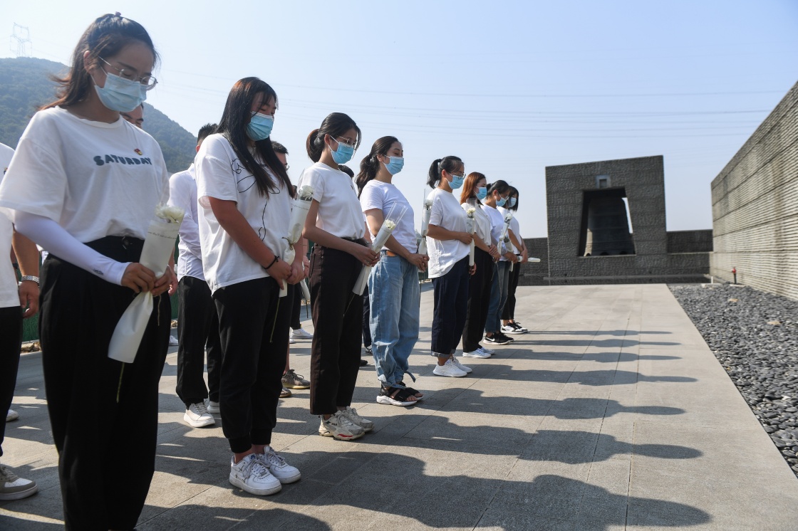 9月18日,黨員代表在抗日戰(zhàn)爭勝利浙江受降紀(jì)念館前默哀。