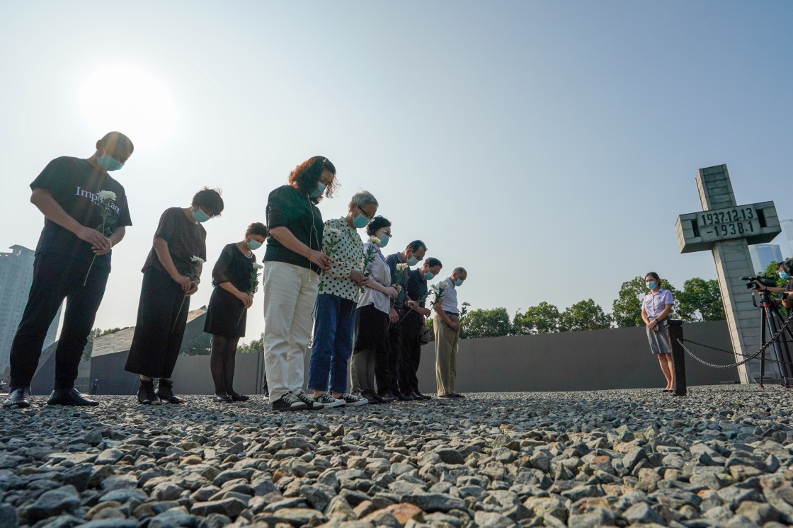 9月18日,南京大屠殺幸存者后代代表在活動(dòng)中敬獻(xiàn)鮮花。