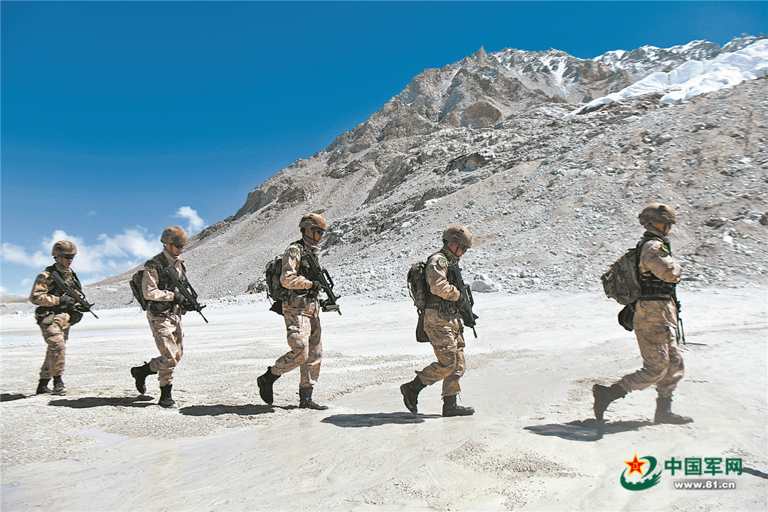 哨所官兵巡邏。