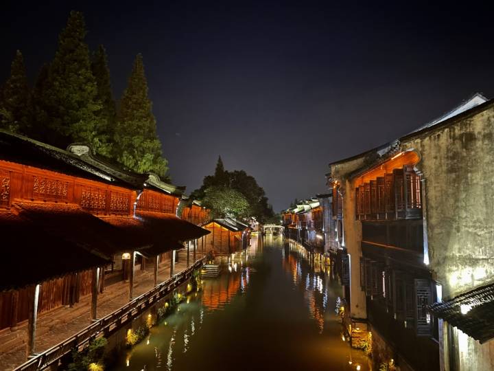 夜晚的烏鎮(zhèn)西柵景區(qū)