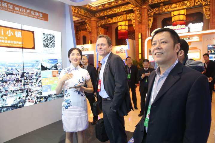 2014年,首屆世界互聯(lián)網(wǎng)大會在浙江烏鎮(zhèn)舉辦,匯集全球網(wǎng)絡界領(lǐng)軍人物。中國電信打造的愛WiFi小鎮(zhèn)驚艷亮相,烏鎮(zhèn)成為世界上第一個WiFi小鎮(zhèn),開啟了特色小鎮(zhèn)信息化升級的先河。同時,中國電信還向國內(nèi)外嘉賓展示了網(wǎng)絡安全、云計算、綜合應用平臺以及大數(shù)據(jù)應用等服務,受到了廣泛關(guān)注。